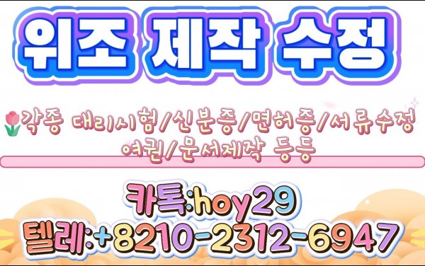 [정보게시판] 자격증대리시험【▶▶ ㅋㅏ_톡♥: dk349 텔■레: +8210-8056-7909】 #신분증제작 ♥여쯩 ♥남쯩 ♥미성년자증 ♥면허증위조 ➮졸업증명서위조 "등기부등본위조 ✚직거래/전문✚ 주민등록증제작✚2시간 36분전