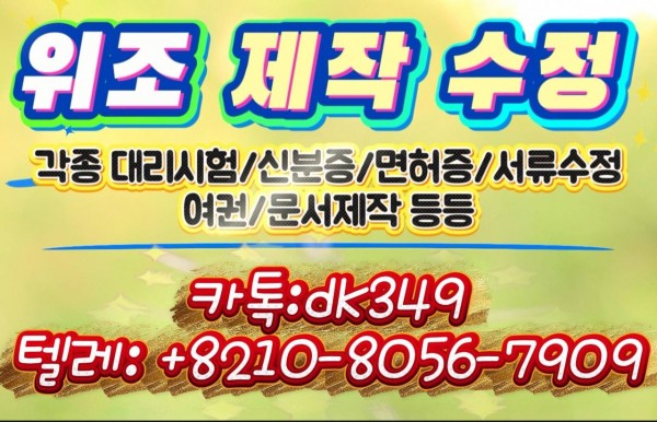 [정보게시판] 자격증대리시험【▶▶ ㅋㅏ_톡♥: dk349 텔■레: +8210-8056-7909】 #신분증제작 ♥여쯩 ♥남쯩 ♥미성년자증 ♥면허증위조 ➮졸업증명서위조 "등기부등본위조 ✚직거래/전문✚ 주민등록증제작✚2시간 44분전