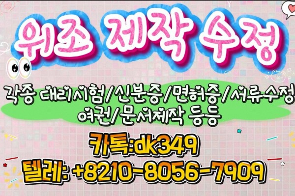 [정보게시판] 자격증대리시험【▶▶ ㅋㅏ_톡♥: dk349 텔■레: +8210-8056-7909】 #신분증제작 ♥여쯩 ♥남쯩 ♥미성년자증 ♥면허증위조 ➮졸업증명서위조 "등기부등본위조 ✚직거래/전문✚ 주민등록증제작✚2시간 5분전